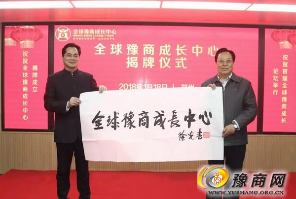 (2018年1月18日,中共河南省委原书记、河南省豫商联合会名誉会长徐光春,九届河南省政协副主席、河南省豫商联合会会长陈义初,河南省侨联主席董锦燕,全球豫商成长中心发起创办人、北京天下豫商文化研究院院长张瞭原为全球豫商成长中心成立揭牌)