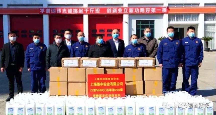 据上海市河南商会介绍,商会常务副会长——上海情申实业有限公司董事长刘情义、副会长苗军超、秘书长王根成一行前往上海市嘉定区消防支队捐赠口罩5000个、消毒液200桶。团体会员单位——项城市上海商会发动会员捐款十多万元以及防疫物资,表达爱心。