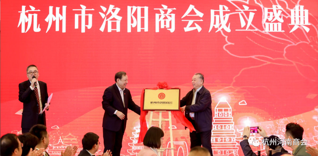 2020年10月18日下午2:30分,杭州市洛阳商会在杭州市之江饭店5楼多功能厅履行完所有法定程序,隆重成立。杭州市委统战部巡视员徐祖德,河南省政协经济委员会原副主任张正林,杭州市委原常委、杭州军分区司令员梁朝清,杭州市工商业联合会(总商会)秘书长黄凯旋、组织建设部部长叶晓良,杭州市民政局调研员曾欣华,洛阳市工商联副主席苏银松,伊川县委常委、统战部部长姬素娟。大会还特别邀请了洛阳市人民政府原副市长杨萍,杭州市公安局禁毒分局原政委孟兰平,杭州河南商会会长朱朝阳等各级领导参加会议
