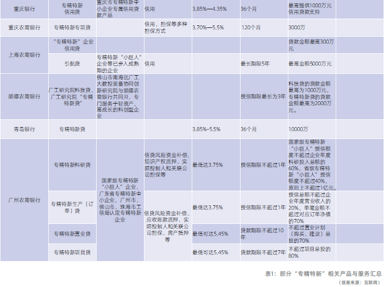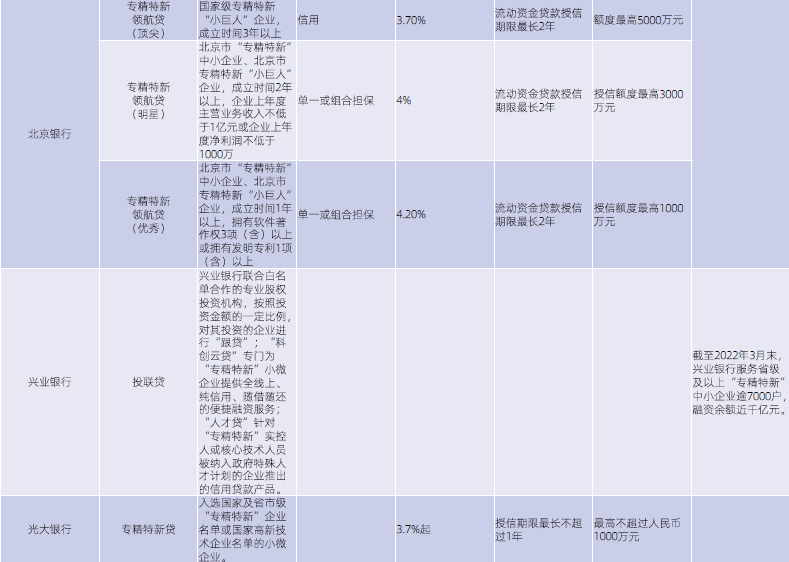 授信额度方面,面向“小巨人”企业的产品额度相对较高,以北京银行“专精特新领航贷【顶尖】”、渤海银行广州分行“小巨人贷”、上海农商银行“引航贷”为例,额度高达5000万元。