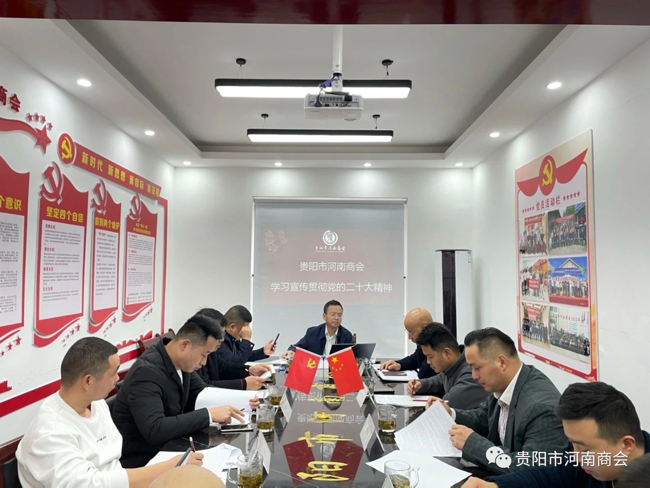 11月20日,贵阳市河南商会邀请贵阳市工商联党组成员、副主席、所属商会党委副书记付坤座谈宣讲党的二十大精神。会上,付坤围绕如何深刻领会这次代表大会的历史意义、如何学习这次代表大会的精神、如何让党的二十大精神在商会和企业落地生根?这三个方面的问题分享了自己的学习心得。座谈会上,大家表示,要把思想统一到党的二十大精神上来,把力量凝聚到实现党的二十大确定的各项任务上来,坚持知行合一、理论联系实际,弘扬企业家精神,心无旁骛,积极围绕企业高质量发展需求实施一批新项目、创新一批新产品、开拓一片新市场,奋力开创新时代民营企业高质量发展新局面,推动党的二十大精神在商会和会员企业落地生根、开花结果。