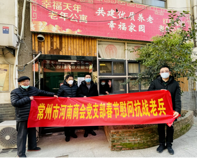 2023年1月18日,常州市河南商会一行上门看望慰问抗战老兵蔡忠南(98岁)、朱学明(101岁)、羊焕钊(97岁)、董江天(98岁),带去常州市河南商会党支部全体党员对他们的新春祝福和诚挚的问候。