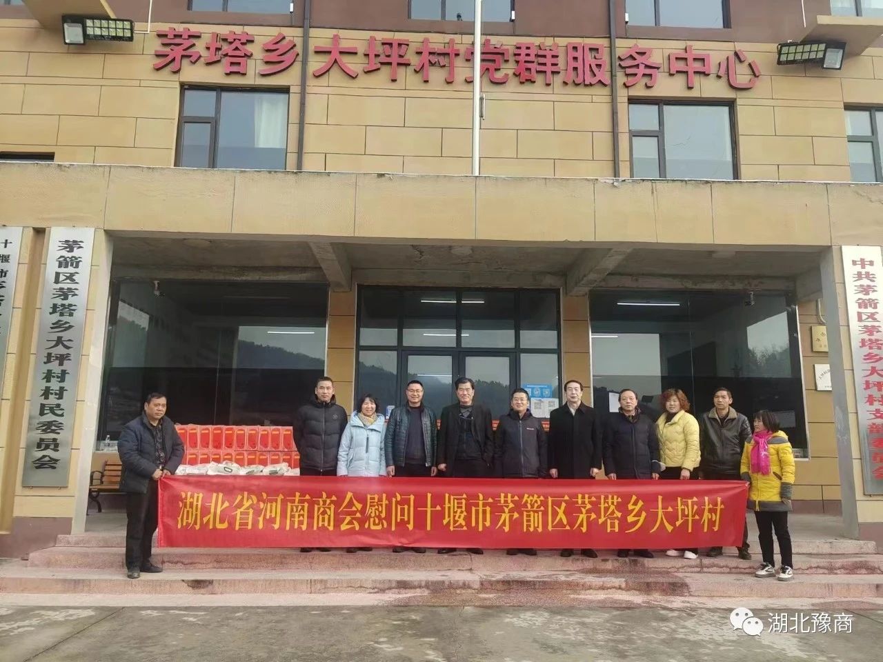 2023年1月15日,湖北省河南商会一行驱车470多公里赶到商会联系点十堰市茅箭区茅塔乡大坪村走访慰问,将筹集来的米、油等价值5.7万元的物资送到当地困难群众手中,嘱咐他们保重身体,并预祝他们过上一个温暖祥和、幸福愉快的春节。