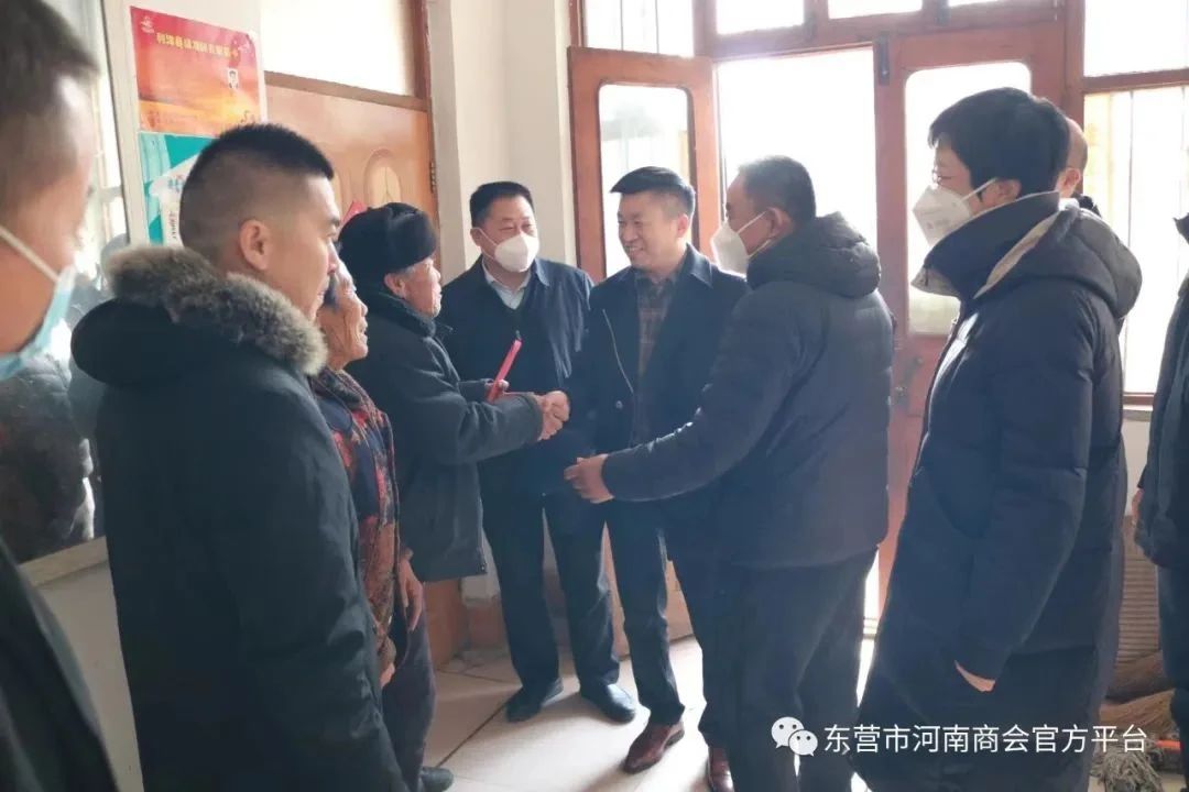 2023年1月17日,在春节来临之际,东营市河南商会到结对村—利津县北宋镇南贾家村对接帮扶工作并开展“迎新春、送温暖”慰问群众活动。为九户生活困难家庭分别送去了大米、面粉、食用油、挂面等生活用品及慰问金共计1.4万元,帮助困难群众解决冬季和春节期间生活难题。